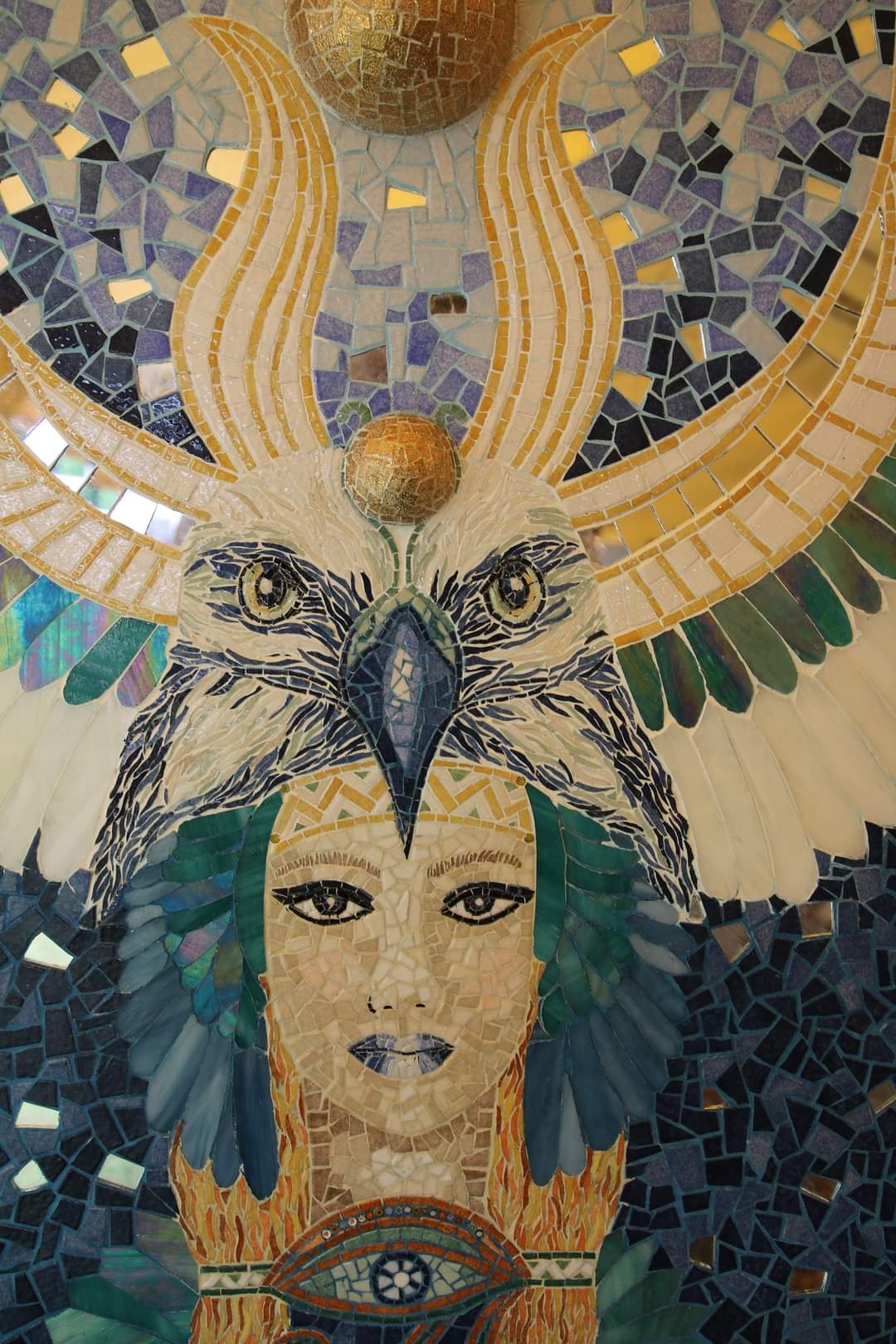 Tika, Femme Chamane et Aigle, Œuvre d’Âme en Vitrail et Mosaïque