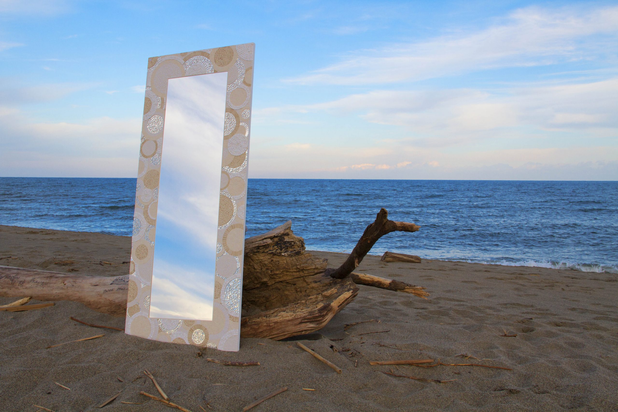 Miroir en Mosaïque, Blanc et Beige, Formes Ronde Entremêlées