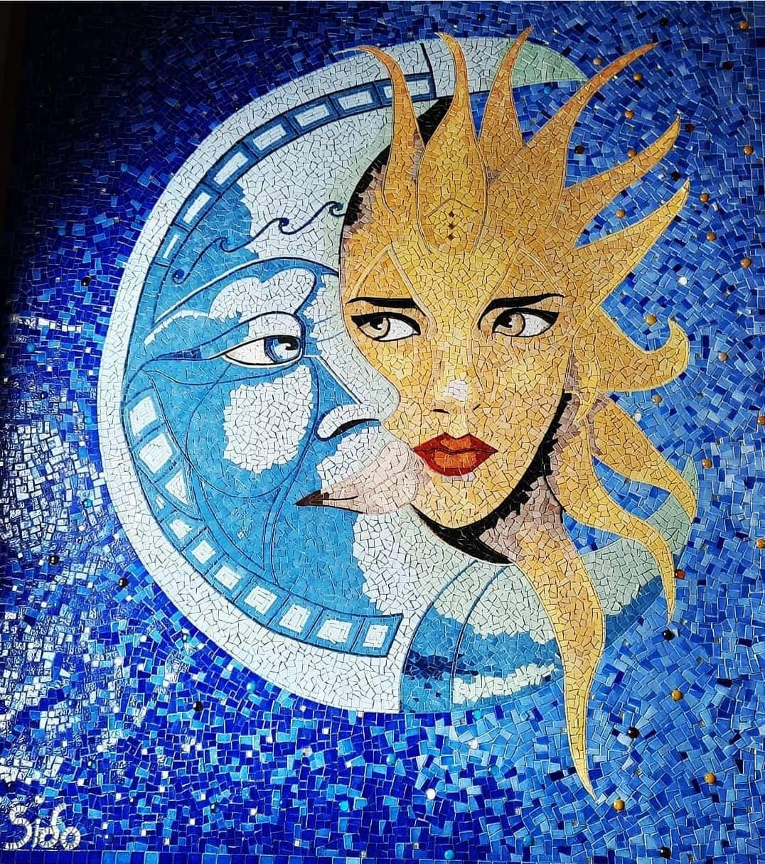 Tableaux artisanaux en mosaïque, inspirés par les éléments, les chakras et les ressentis énergétiques.