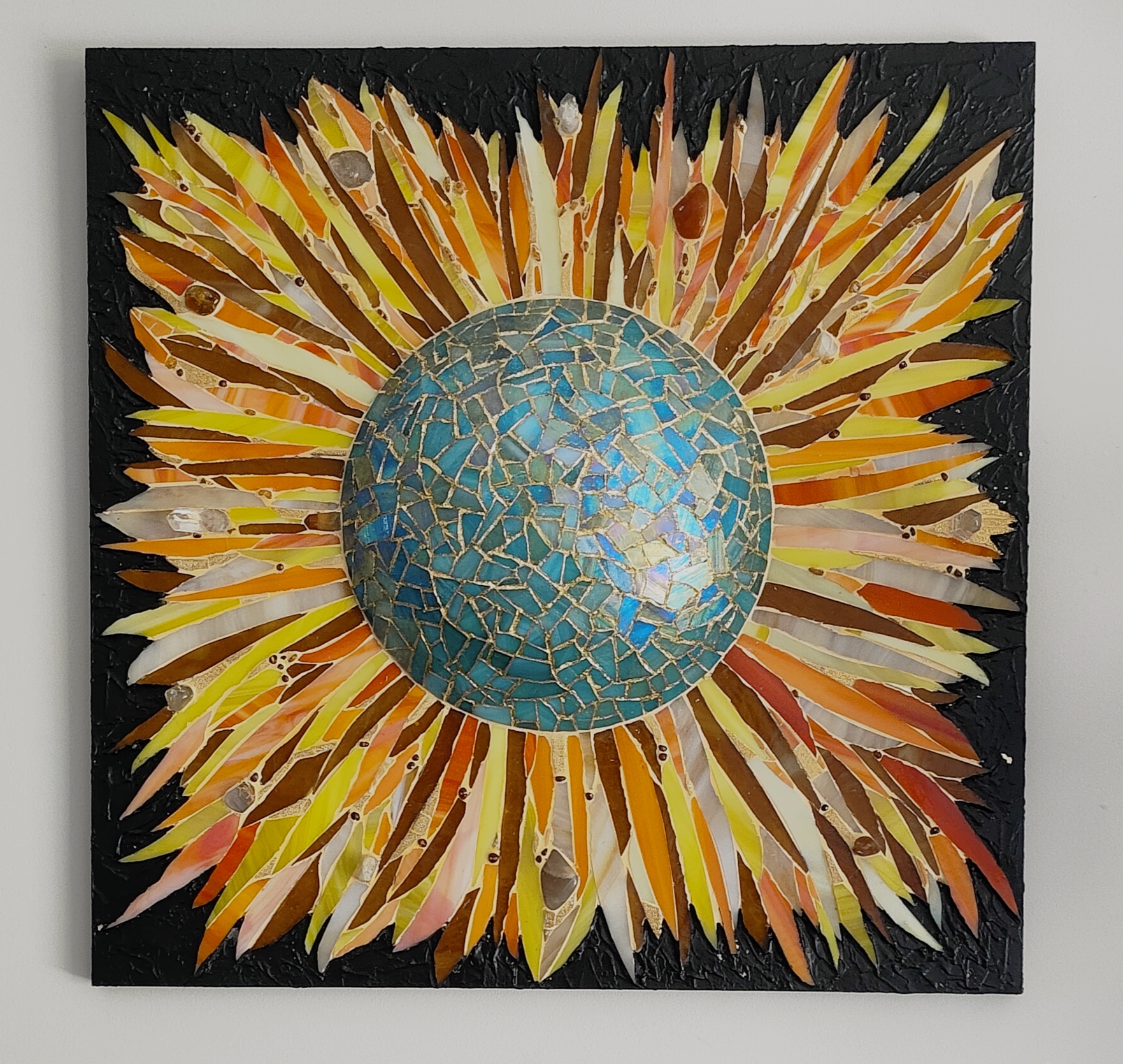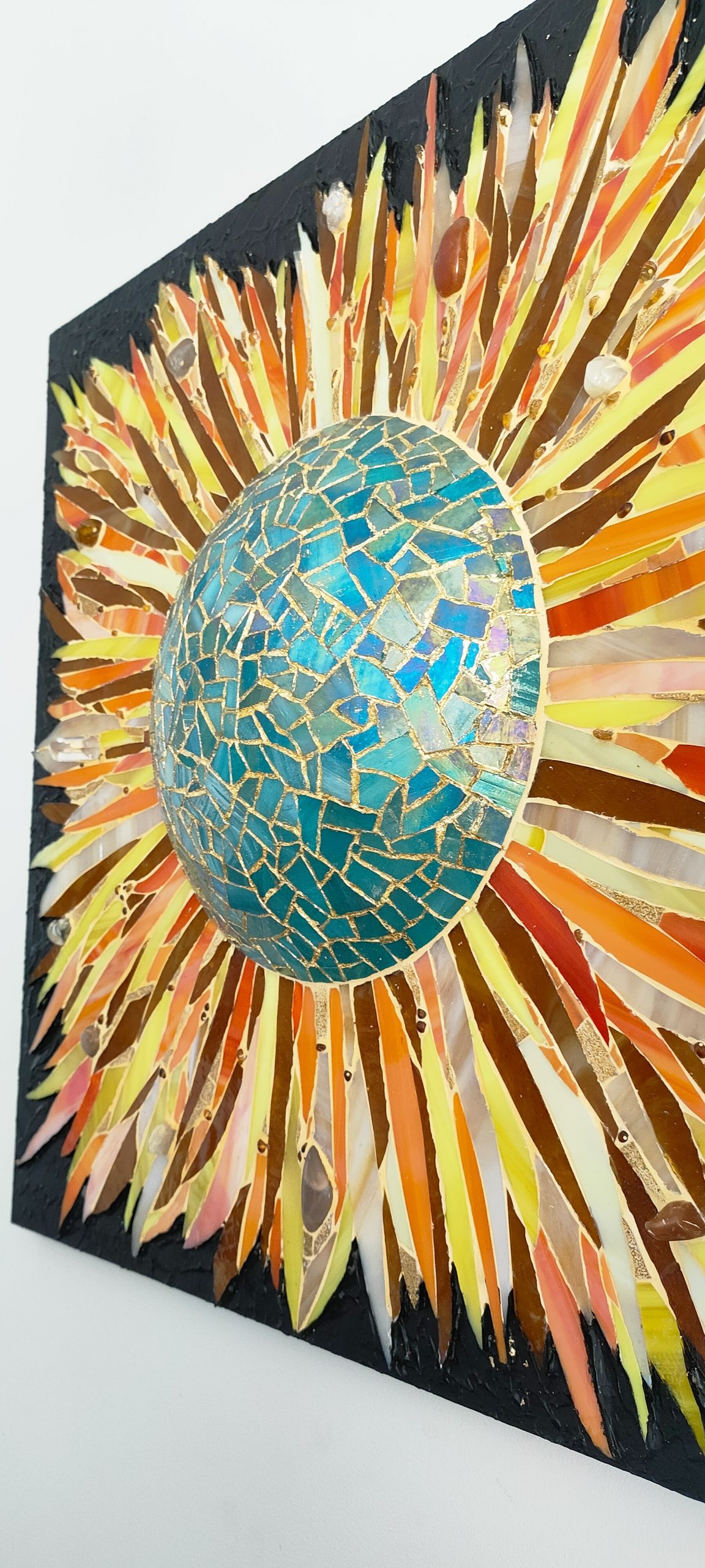 « Je suis en Feu » est une œuvre en vitrail et mosaïque qui incarne la puissance de la transformation et de la vitalité intérieure. Chaque éclat de verre coloré reflète la lumière comme une danse, évoquant l’élan de vie, la passion créatrice et la force du renouveau. Symbole sacré de la flamme, cette création unique invite à embrasser son feu intérieur et à illuminer l’espace où elle rayonne.